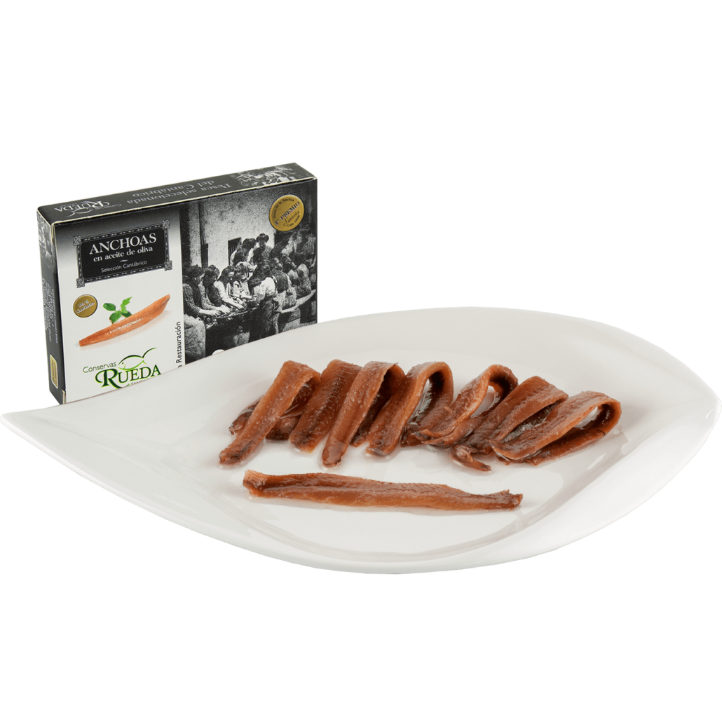 Conservas Rueda è una piccola impresa artigianale a conduzione familiare nella città di Santoña, Cantabria che da oltre 20 anni si dedica alla lavorazione artigianale delle acciughe del Cantabrico e di altri prodotti gourmet. L’azienda ha dedicato tutta la sua vita allo sviluppo artigianale delle acciughe dal Mar Cantabrico, con grande sforzo sin dal primo giorno.