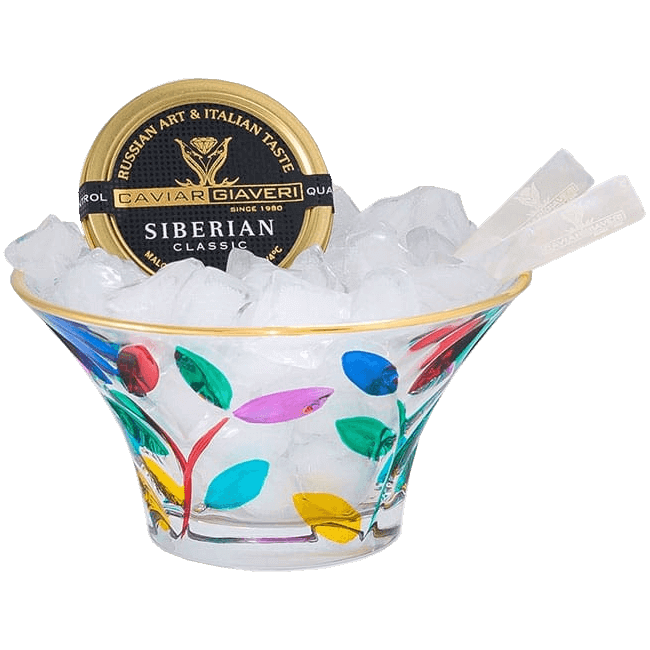 Quale modo migliore di portarlo in tavola se non in un prezioso porta caviale interamente lavorato a mano e dipinto da abili Maestri vetrai di Venezia?