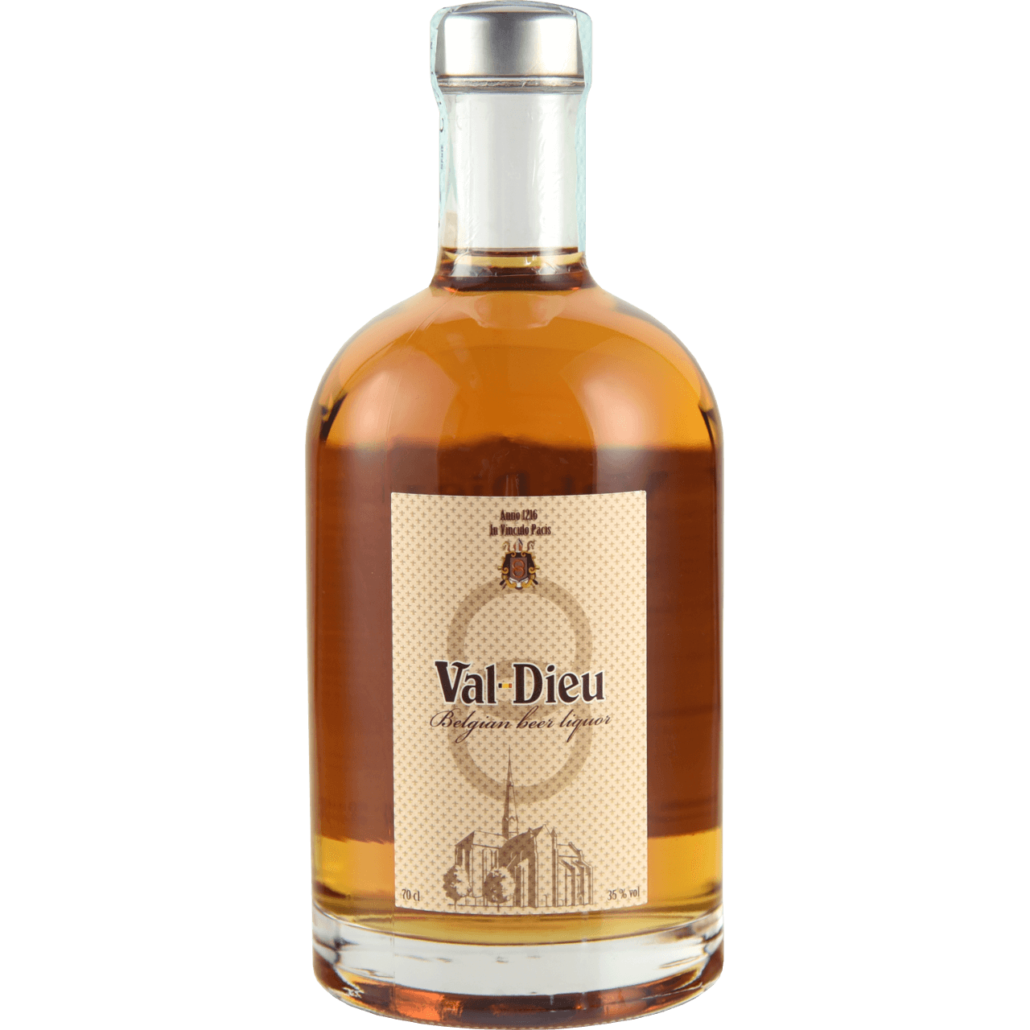 Ottenuto dalla distillazione della Birra Val-Dieu Grand Cru e miscelato con 18 spezie e aromi diversi. Piacevole, leggermente dolce, dal gusto con note di arancia, da proporre in una chiusura degustativa di formaggi erborinati o affinati.