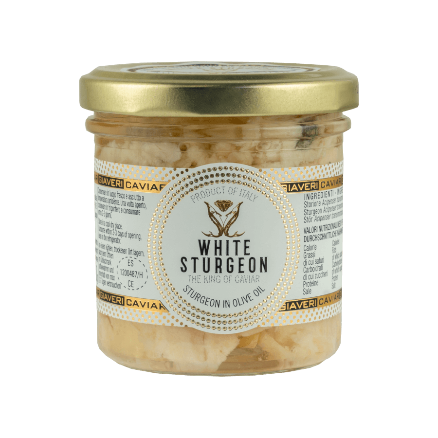 Gli storioni provengono direttamente dalla oasi di allevamento Giaveri situata nelle zone risorgive della Marca Trevigiana ricche di acque purissime: una filiera completamente controllata a garanzia di un’altissima qualità. I filetti cotti a vapore e senza l’aggiunta di conservanti secondo la nostra ricetta artigianale vengono lavorati e confezionati manualmente In olio extravergine di oliva e arricchiti da una leggera nota di affumicato.