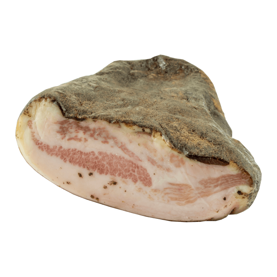 Derivato dalla guancia del maiale, viene rifinito con sale marino e spezie naturali, quindi lasciato stagionare per almeno 6 mesi per sviluppare un sapore intenso e aromatico.